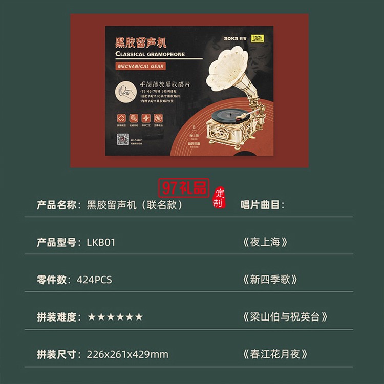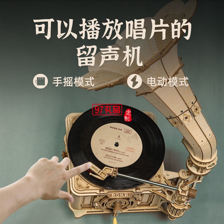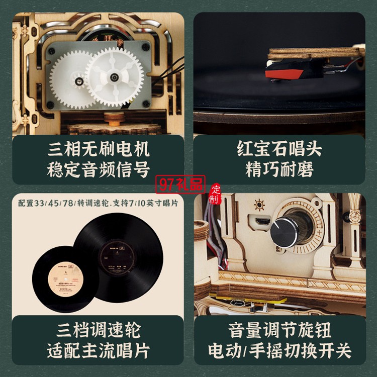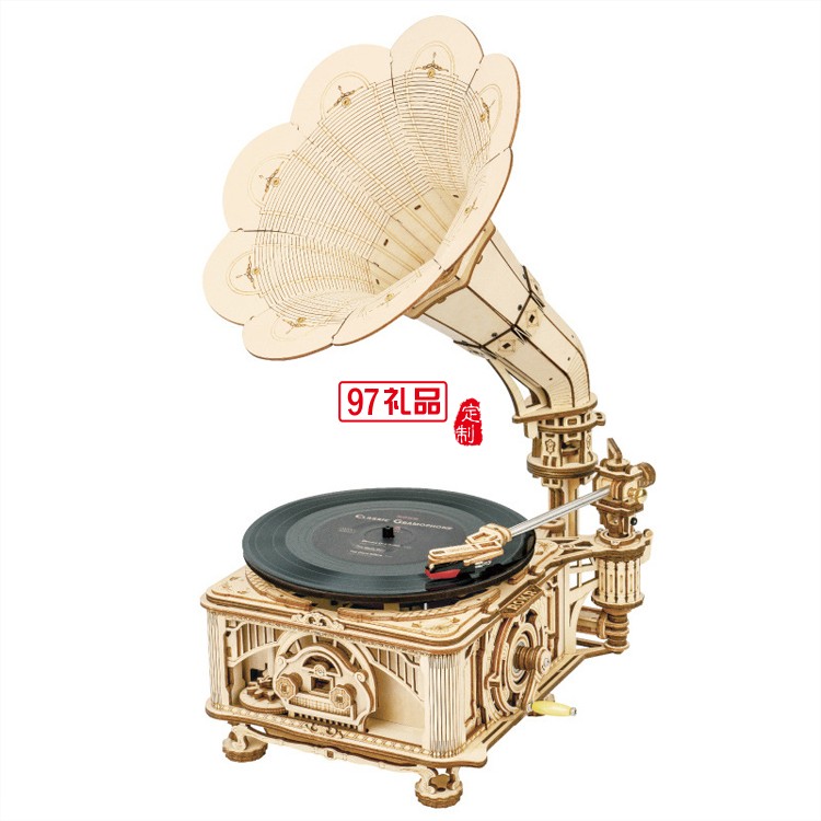 黑膠留聲機(jī)立體拼裝玩具生日禮物八音盒