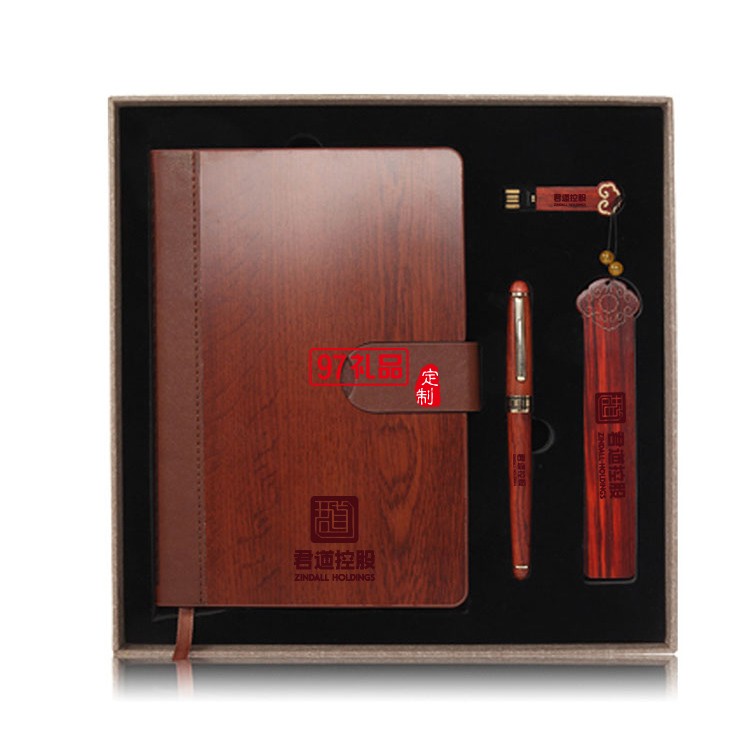產(chǎn)品配置:紅木筆記本+紅木簽字筆+紅木U盤+紅木書簽