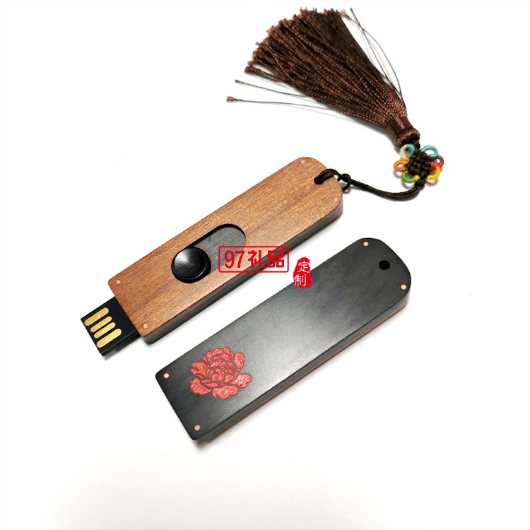 中國風(fēng)窗花創(chuàng)意U盤 鑲銀檀木推拉