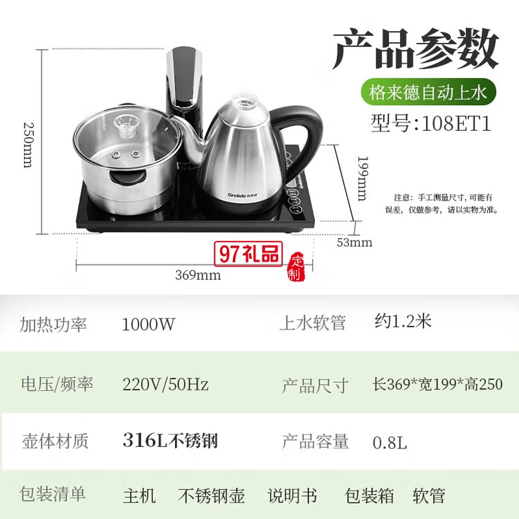 格來德電熱水壺?zé)畨?16L不銹鋼電水壺108ET1定制公司廣告禮品