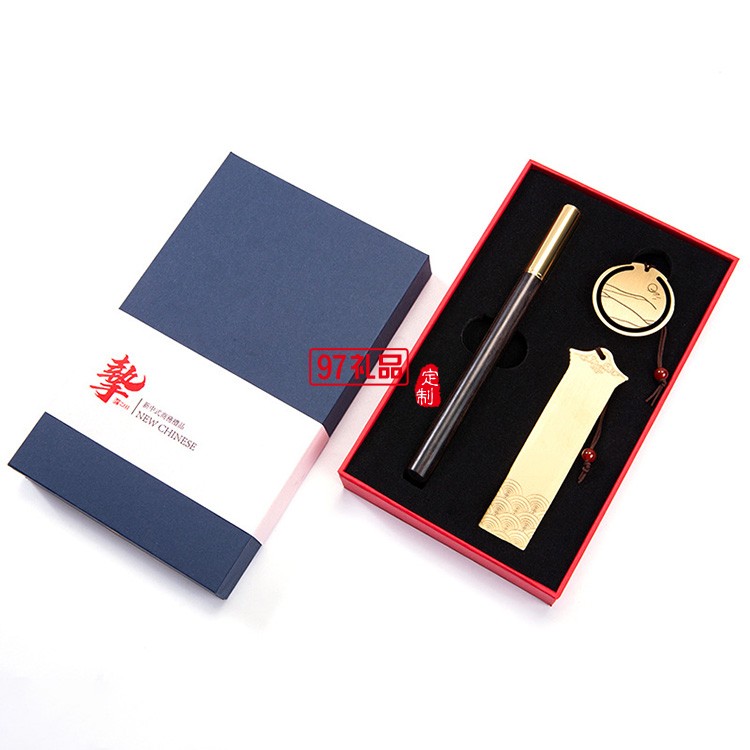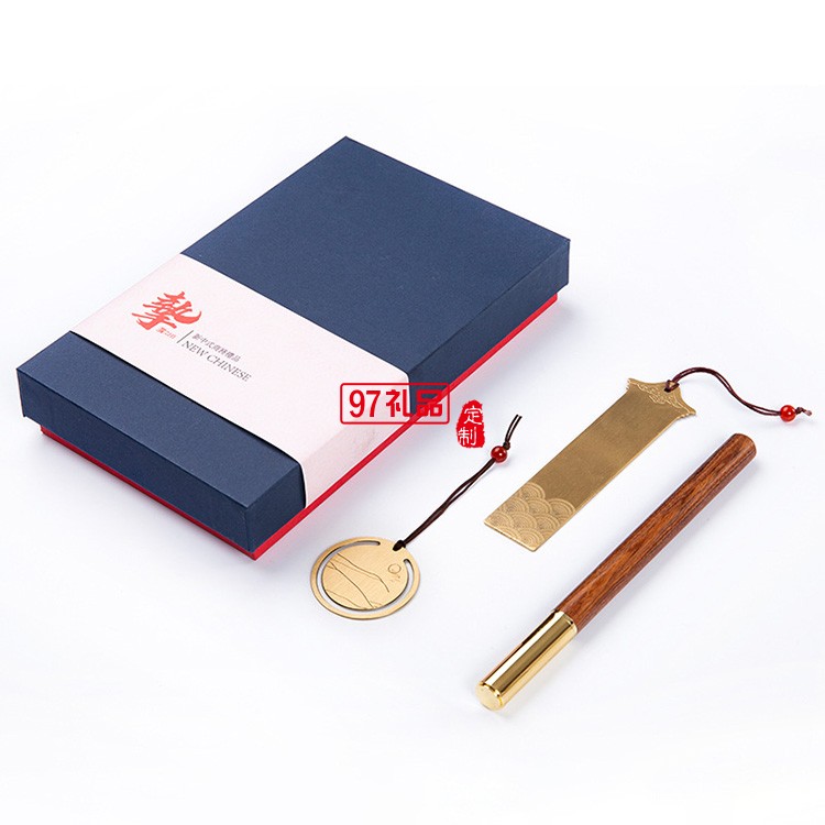 黃銅書簽書扣紅木筆商務(wù)文創(chuàng)禮品套裝