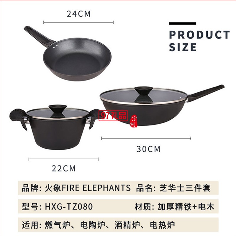 火象不沾鍋三件套鍋具家用加厚鍋具組合企業(yè)年會(huì)禮品鍋送客戶禮品