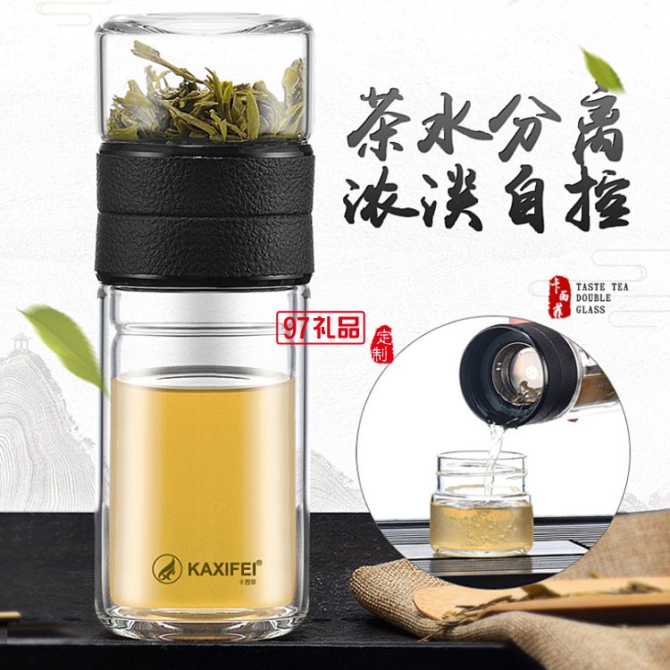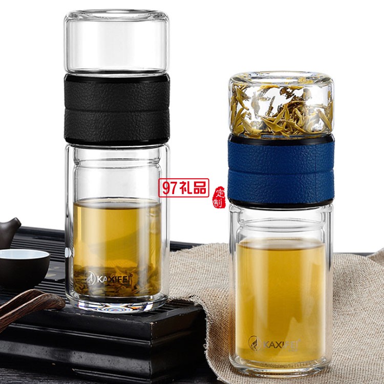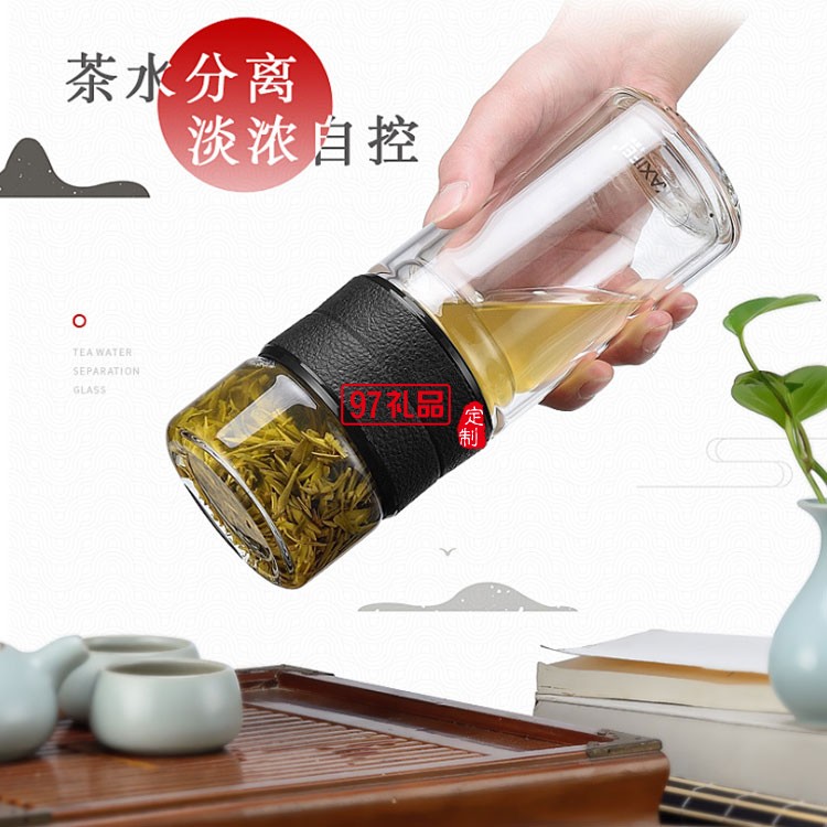 茶水分離杯創(chuàng)意雙層玻璃杯商務(wù)泡茶杯可定制logo