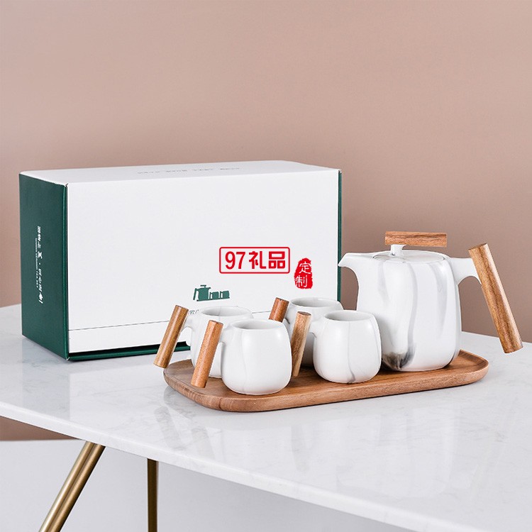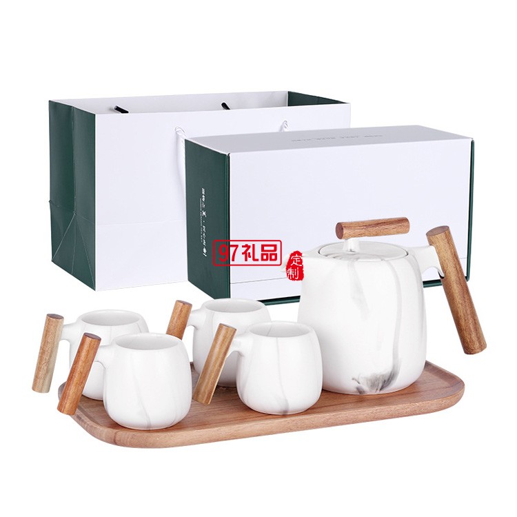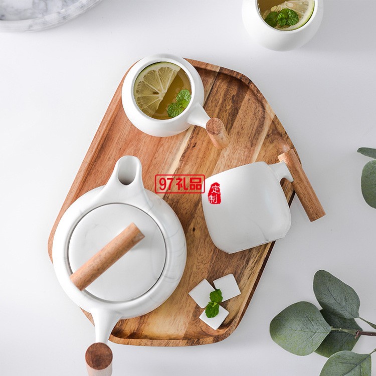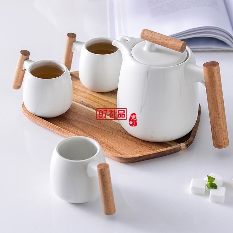 北歐創(chuàng)意簡(jiǎn)約茶壺木手柄咖啡陶瓷茶具禮盒套裝花茶壺
