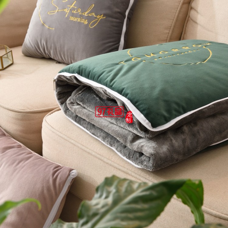 加厚毛絨刺繡抱枕被