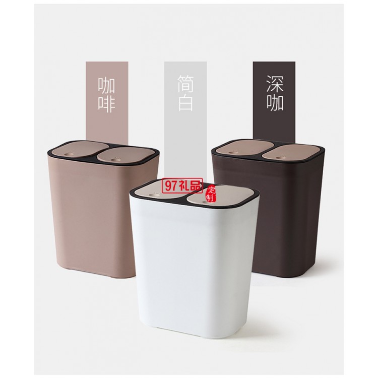 簡(jiǎn)約按壓彈蓋家用干濕分類垃圾桶