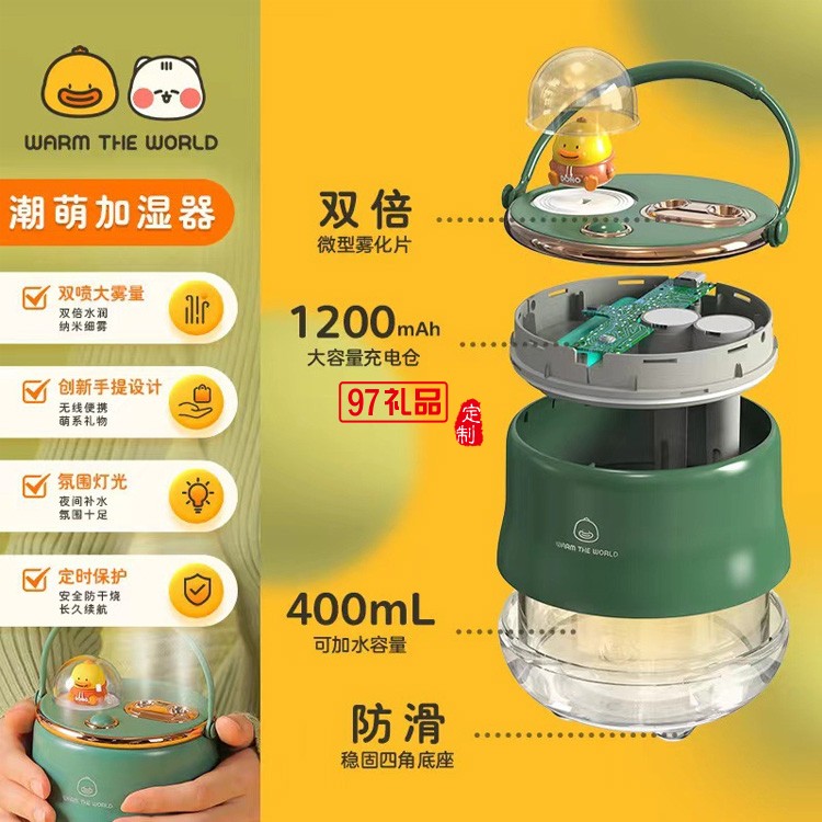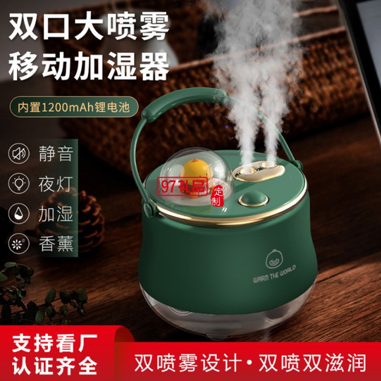 加濕器充電補(bǔ)水無線移動(dòng)雙噴加濕器小夜燈加濕器定制公司廣告禮品