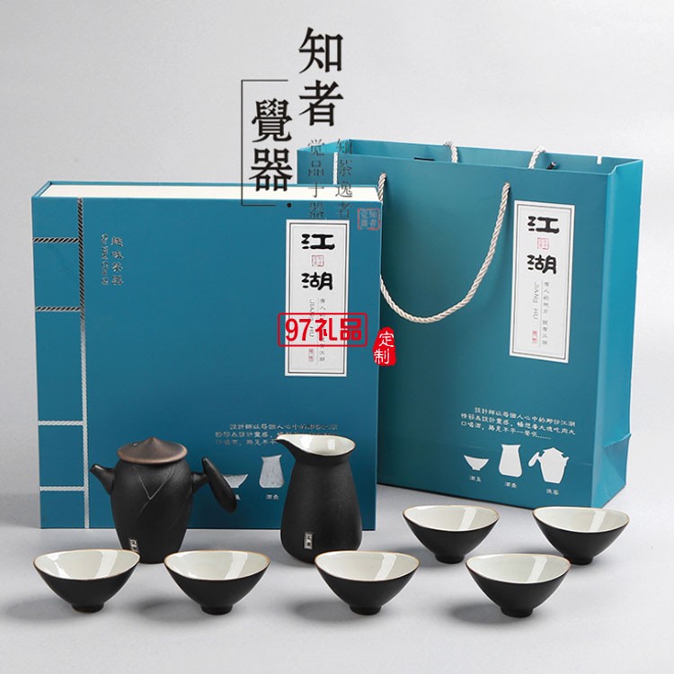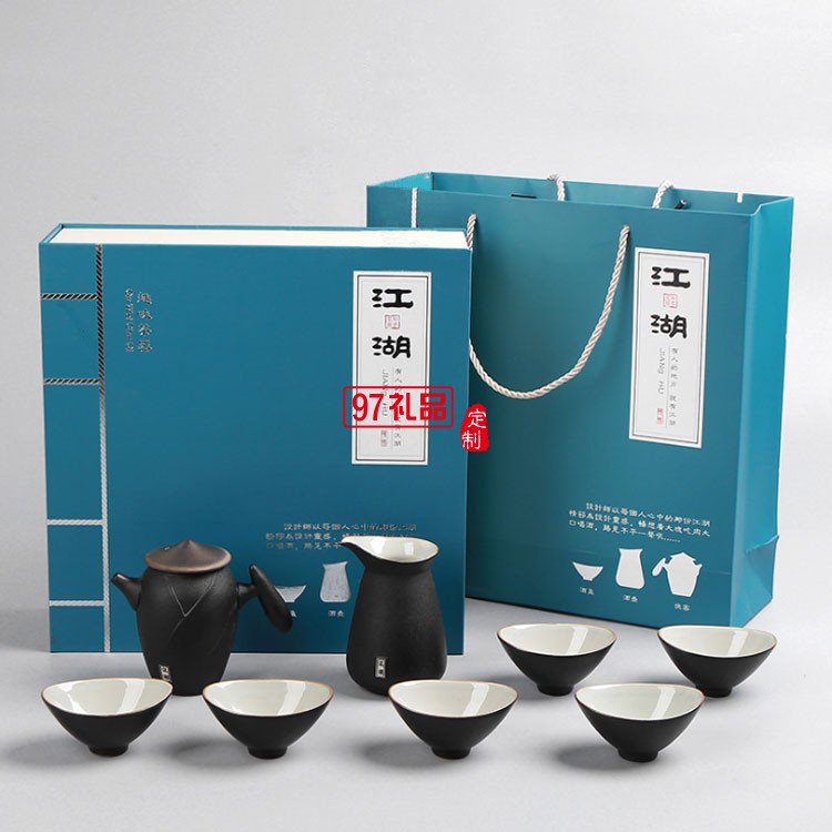 江湖黑陶瓷功夫茶具高檔商務送禮可定制LOGO