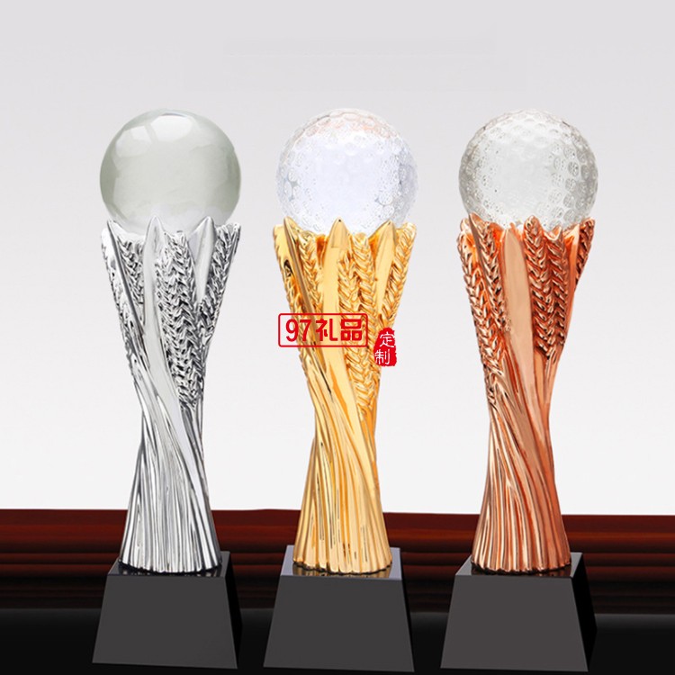 金色麥穗樹脂獎(jiǎng)杯 水晶球獎(jiǎng)杯定做刻字