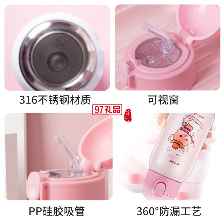 家佳百味定制 卡通保溫杯不銹鋼彈跳蓋吸管水杯
