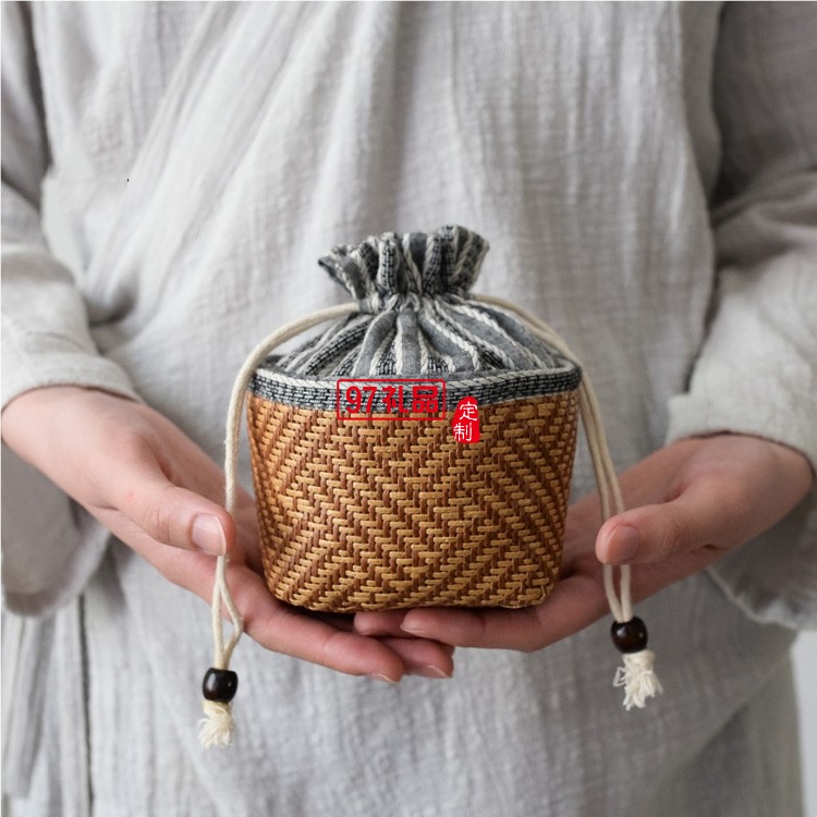 棉麻收納袋快客杯茶壺布包全束口編制便攜旅行茶具小布袋