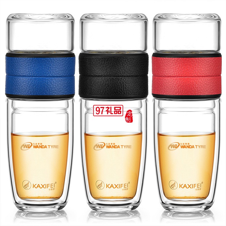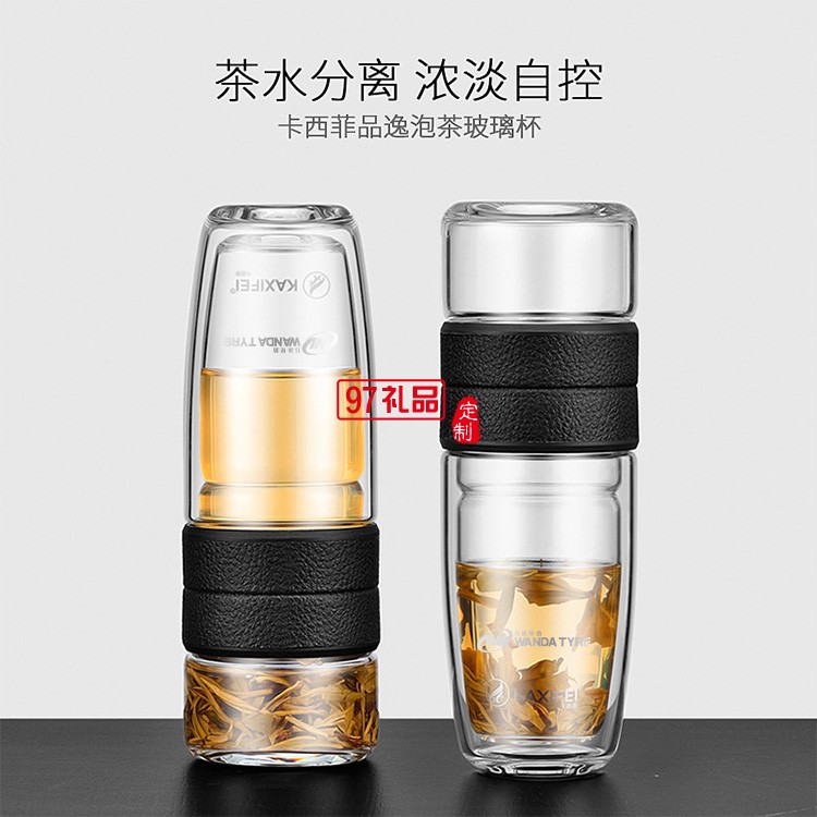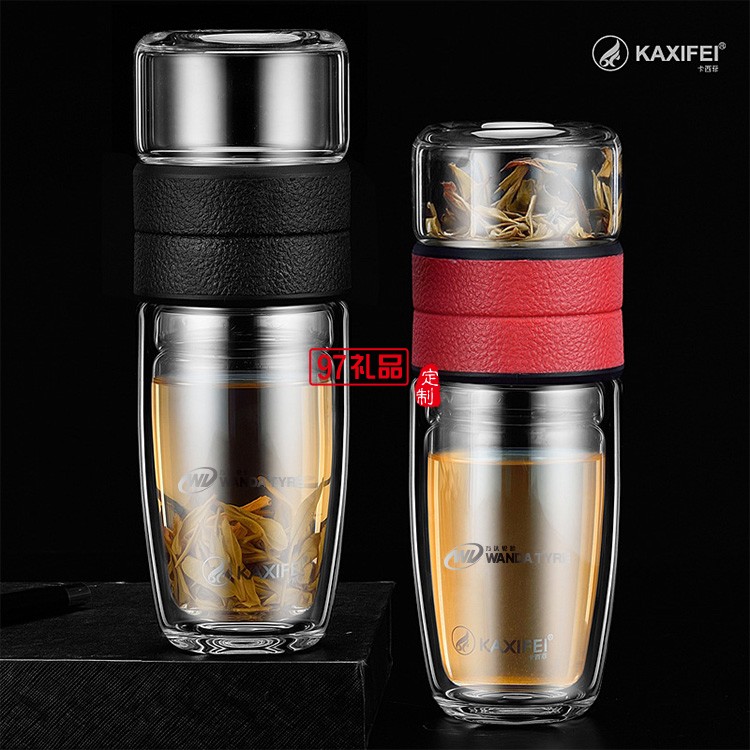 萬達輪胎定制 卡西菲車載便攜式茶水分離 雙層玻璃杯 可定制LOGO