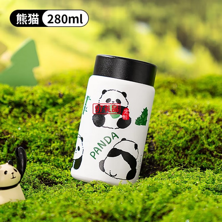 迪樂貝爾可愛熊貓系列周邊紀(jì)念伴手禮水杯316不銹鋼便攜提手保溫杯