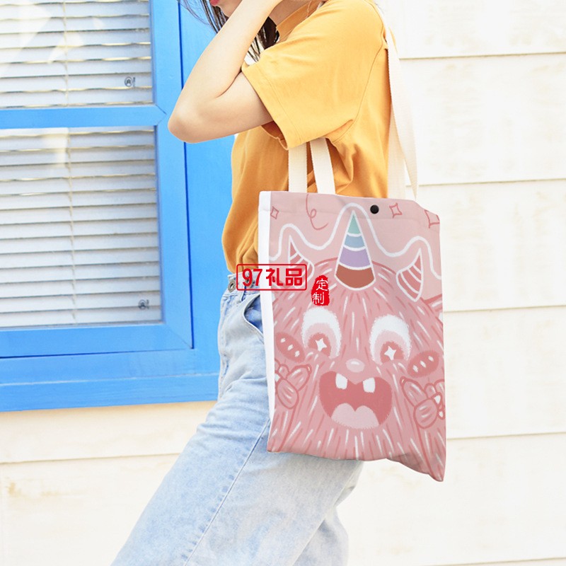 新款粉色小怪獸學(xué)生大容量單肩帆布手提袋購物袋定制