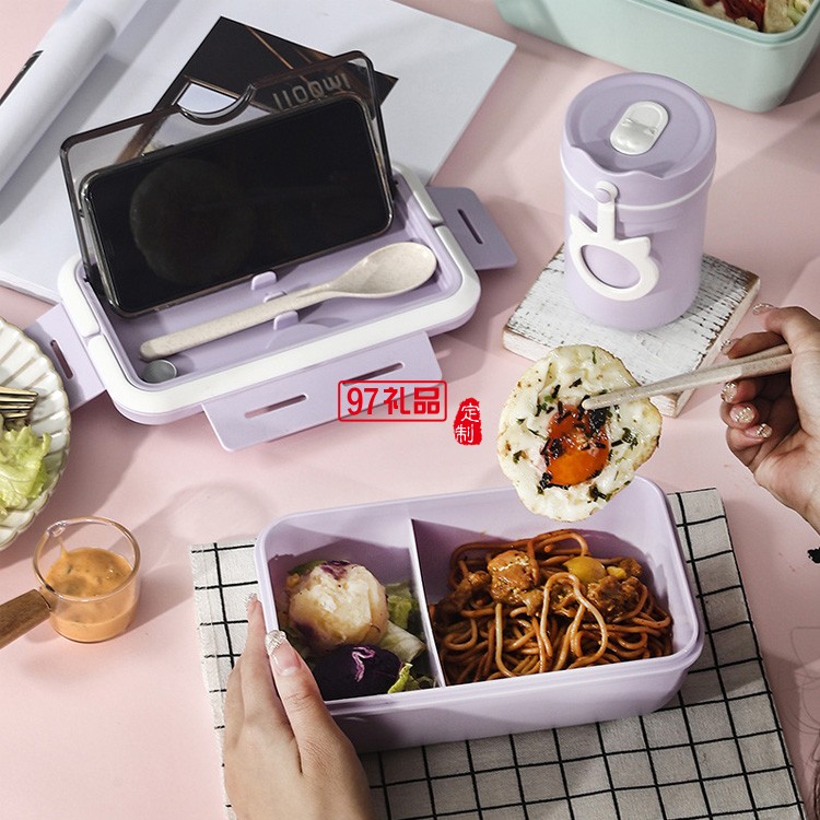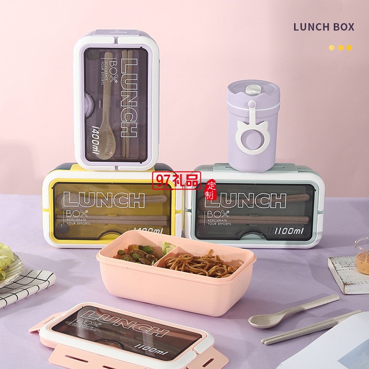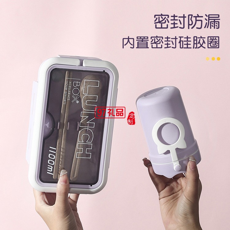 可微波爐塑料分格飯盒午餐盒密封防溢帶飯便當(dāng)盒湯罐早餐杯套裝