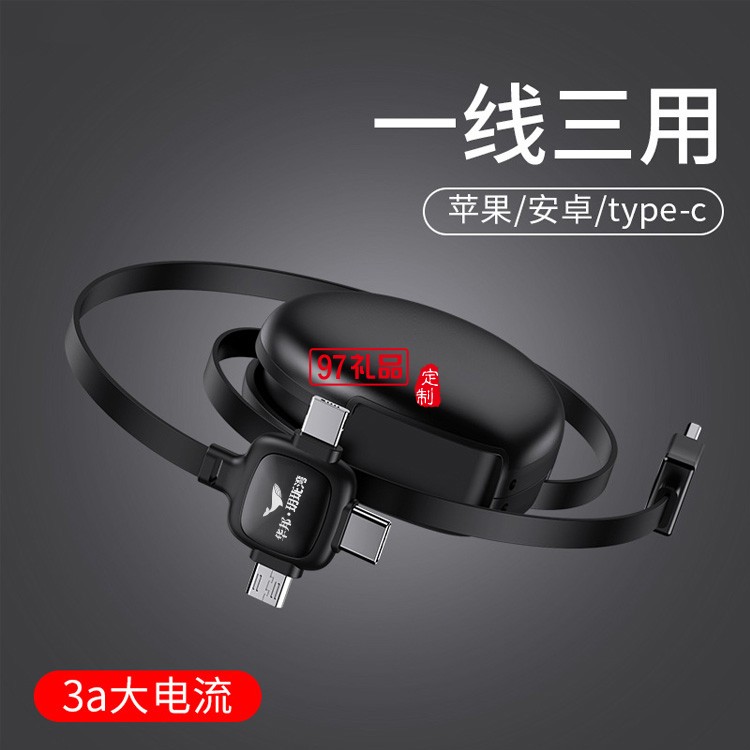 品勝一拖三數(shù)據(jù)線三合一伸縮線3A快充適用蘋果安卓type-c充電線