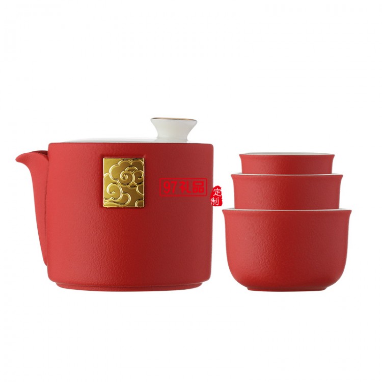 鎏金如意 旅行茶具組壺+ 杯+旅行包+茶巾布