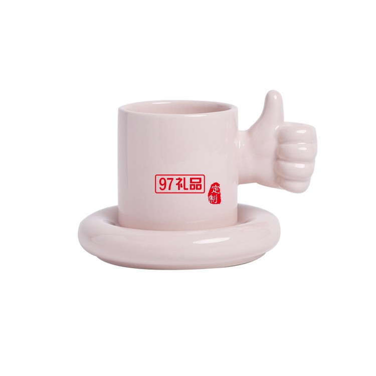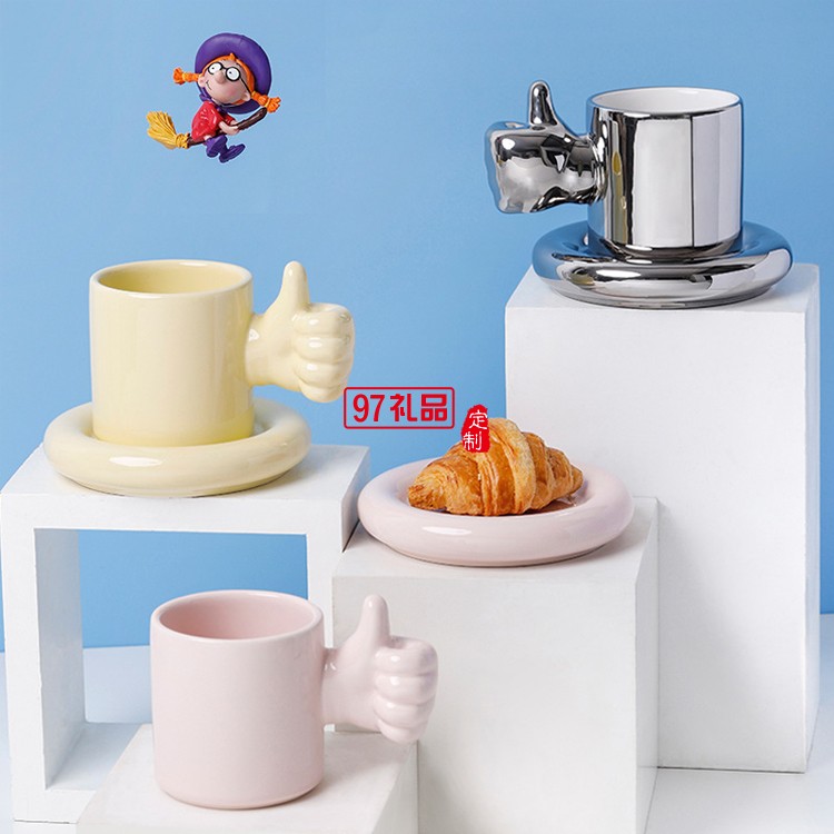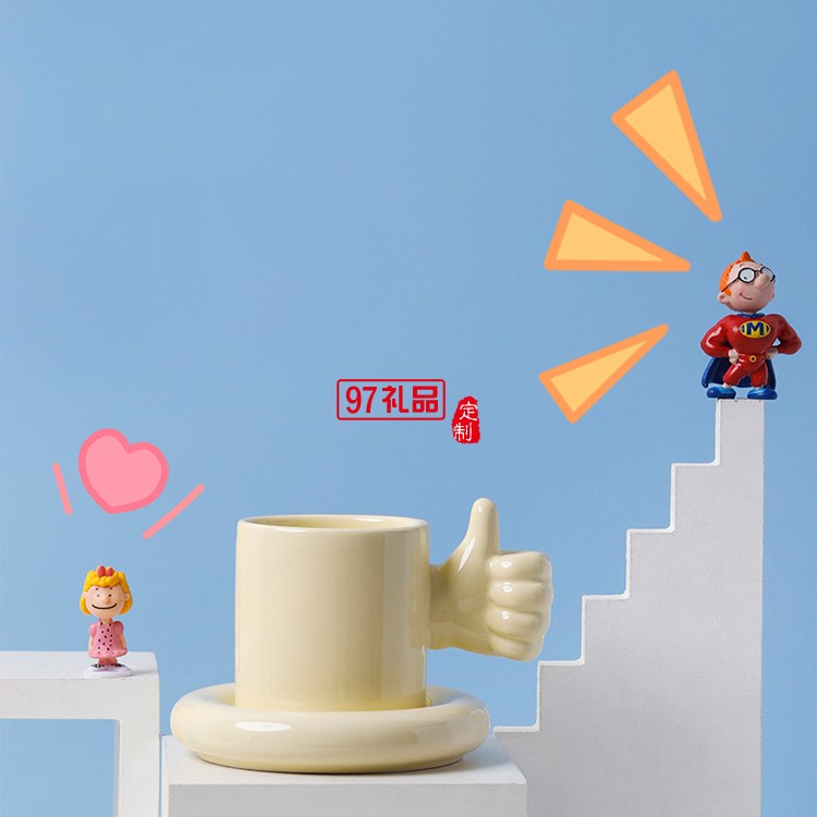 陶瓷馬克杯創(chuàng)意大拇指點贊杯 個性佼佼者杯奧利給咖啡杯碟彩盒
