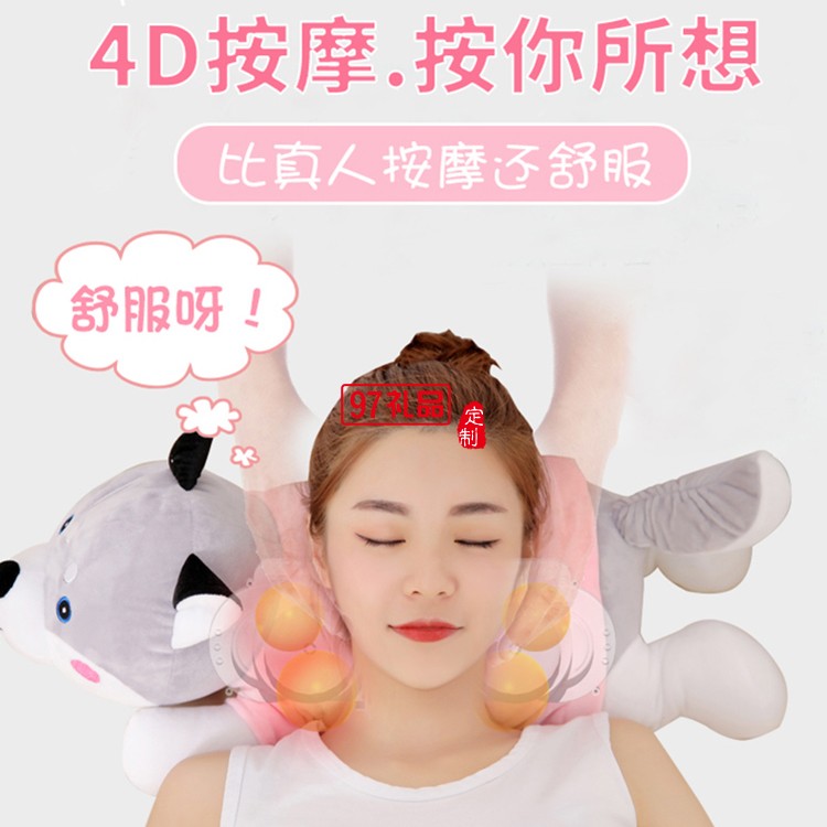 會(huì)按摩的小豬抱枕毛絨玩具肩背部腰部頸椎按摩器定制公司廣告禮品