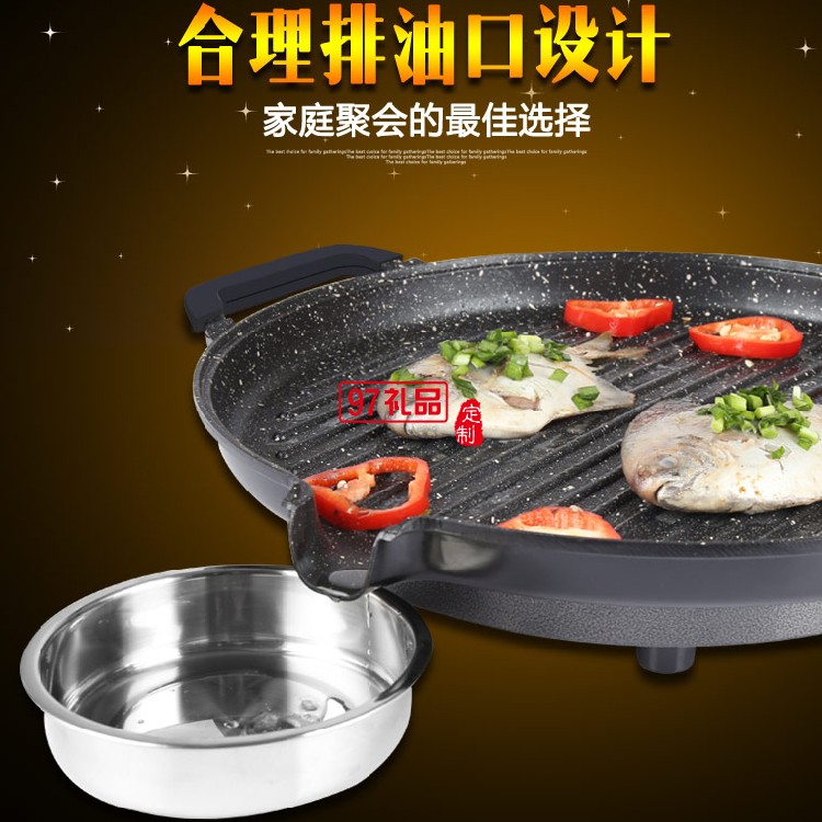 無煙電烤盤麥飯石不粘電烤爐燒烤爐圓形烤肉機(jī)定制公司廣告禮品