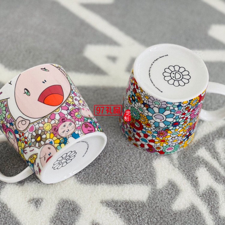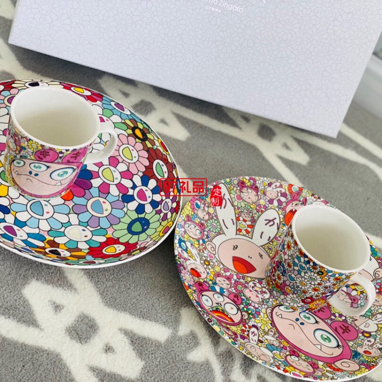 日本村上隆太陽(yáng)花馬克杯限定版兔子餐盤餐具套裝禮盒2杯2盤碟