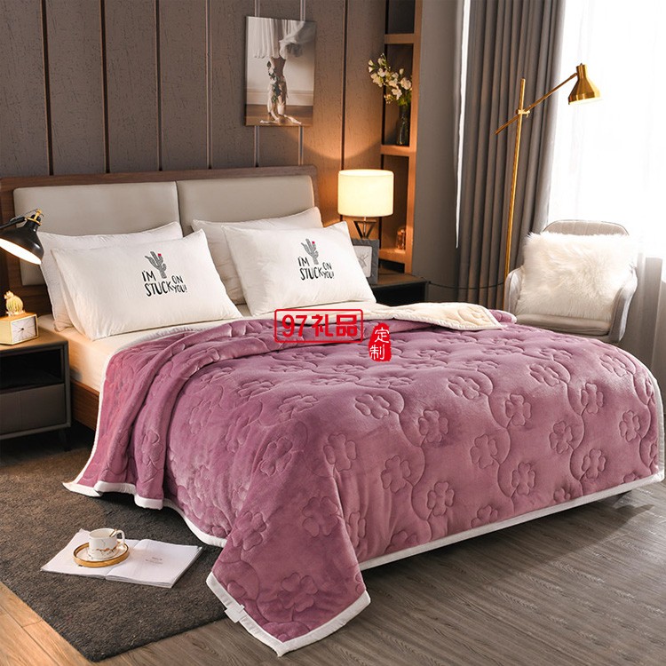 四葉草毛毯三層加厚秋冬保暖被毯高檔禮品法蘭絨珊瑚絨毯