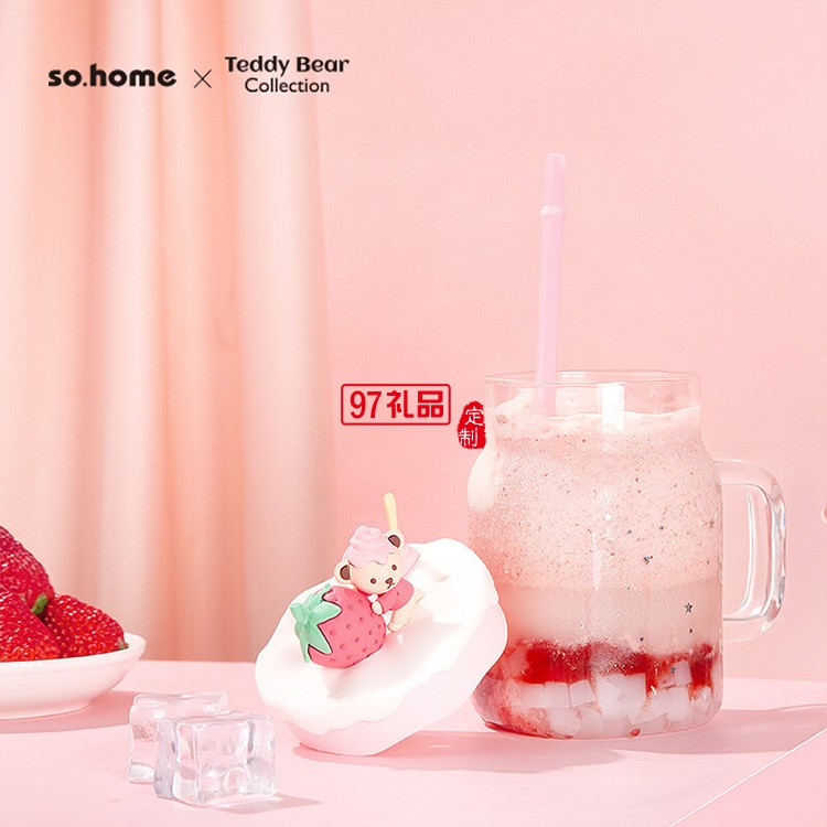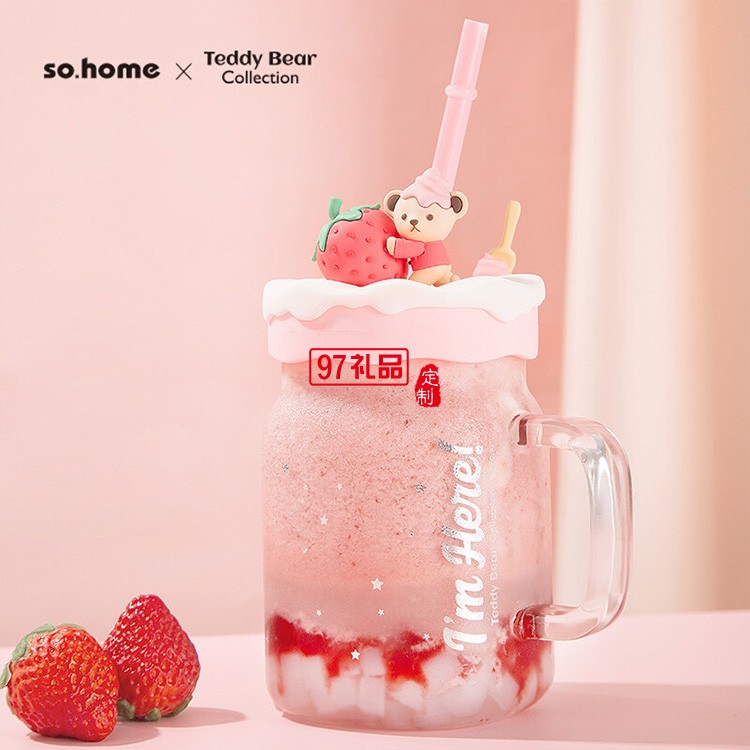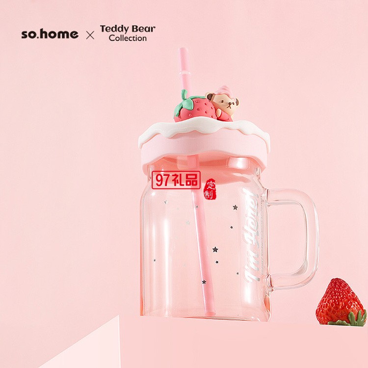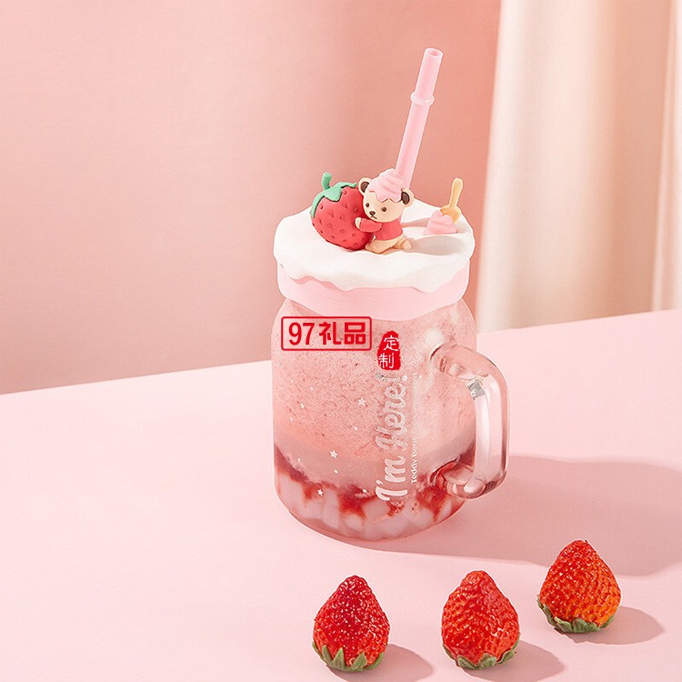 卡通可愛吸管杯草莓玻璃杯少女風(fēng)ins玻璃杯吸管杯禮品杯子定制