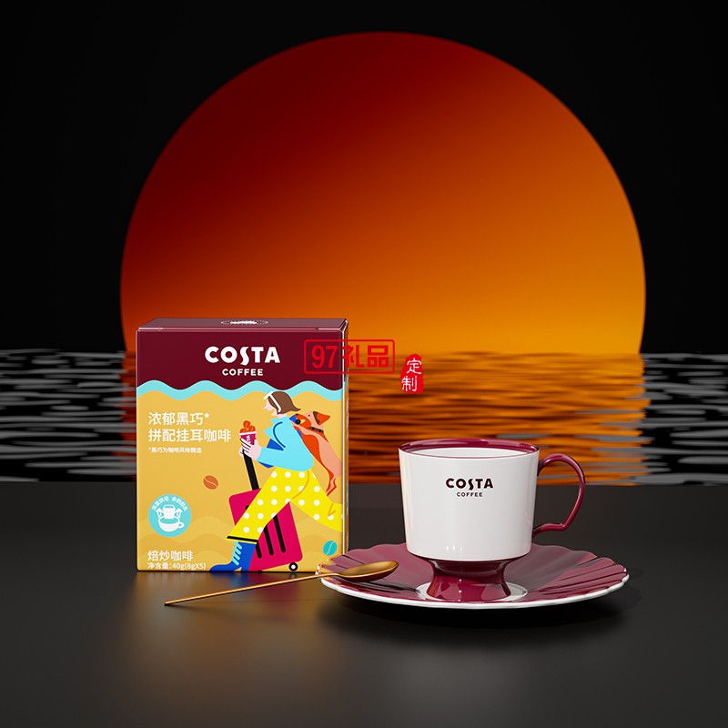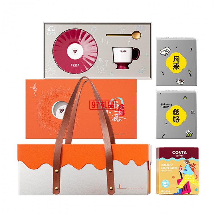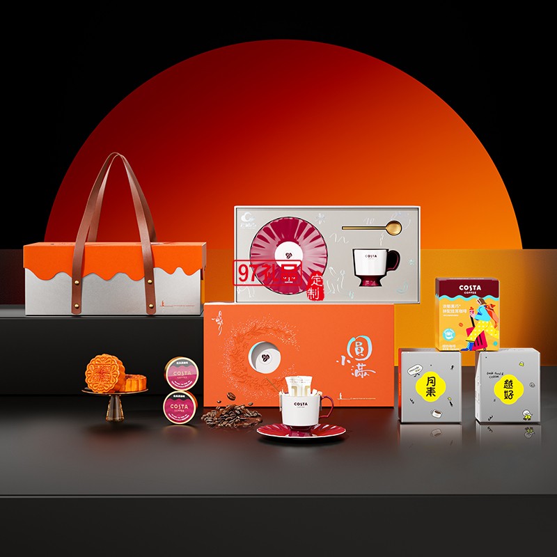 COSTA摩登咖啡杯碟勺套裝*1、COSTA掛耳咖啡*1、咖世家經(jīng)典黑咖味咖啡糖*2、知味觀月餅*2