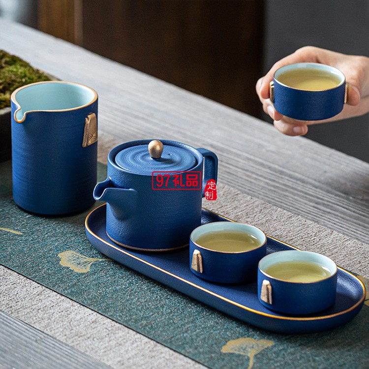 新品高檔描金茶具商務(wù)皮包茶具便攜泡茶茶具套裝 可定制logo