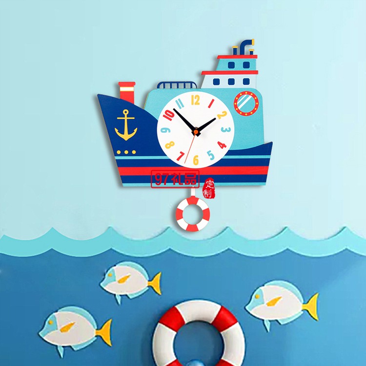 木質(zhì)卡通搖擺鐘 兒童房裝飾鐘表