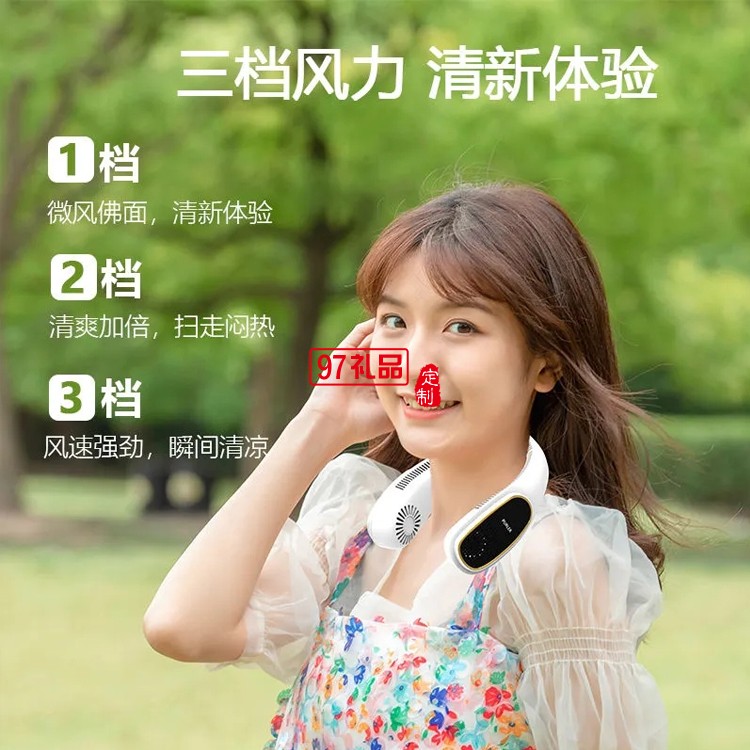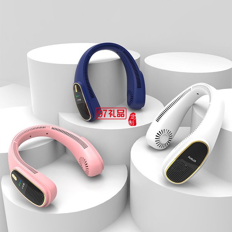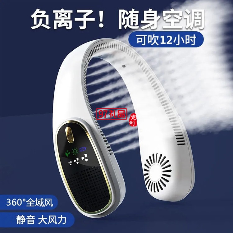 四核無葉風(fēng)扇強(qiáng)力渦輪降溫懶人便攜式頭戴小電扇定制公司廣告禮品