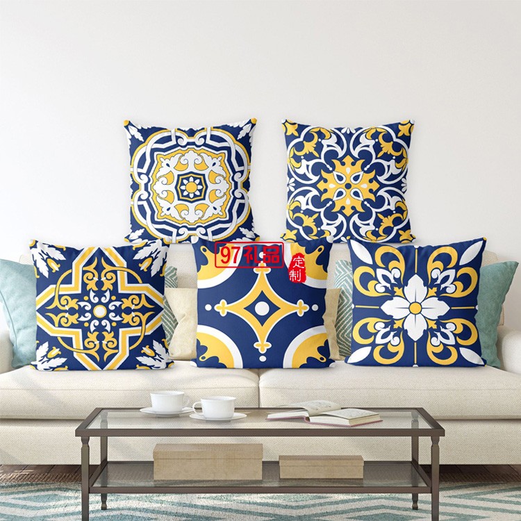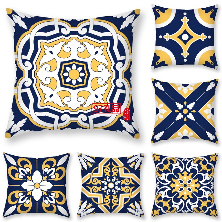 新款歐式幾何印花抱枕套家居臥室沙發(fā)靠枕美式抽象輕奢抱枕