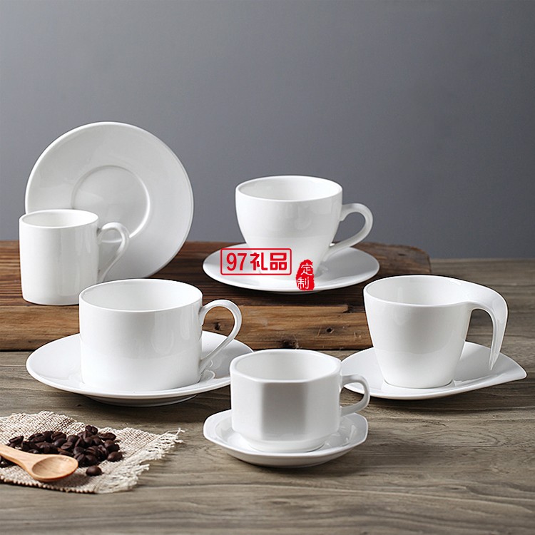 咖啡杯碟套裝 陶瓷創(chuàng)意 歐式咖啡杯純白 簡約咖啡杯 可定制杯子