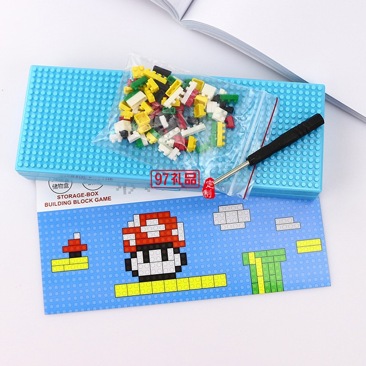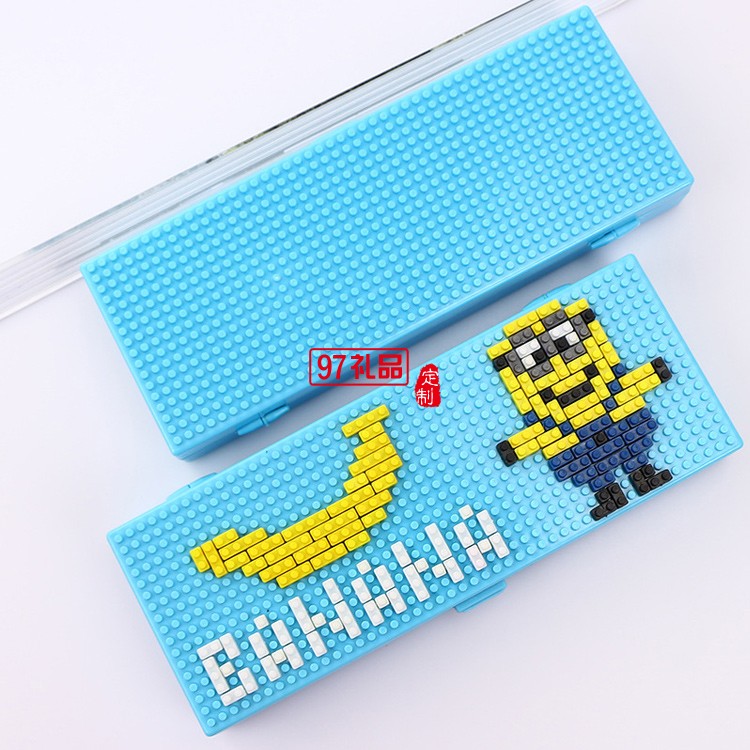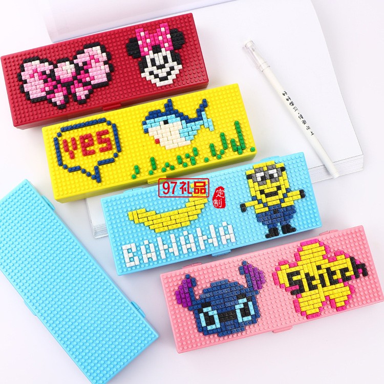 創(chuàng)意兒童拼裝卡通塑料積木文具盒 DIY學生鉛筆盒