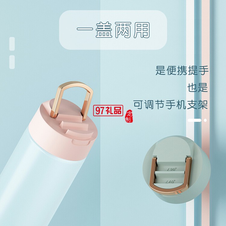 玻璃杯可愛男女手機支架韓版ins學(xué)生便攜卡通禮品杯子定制