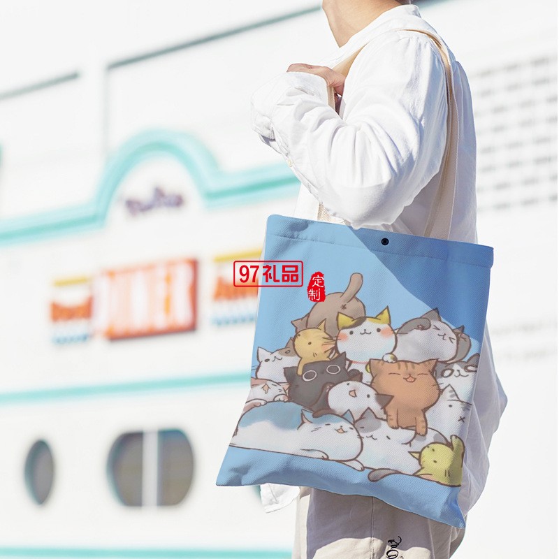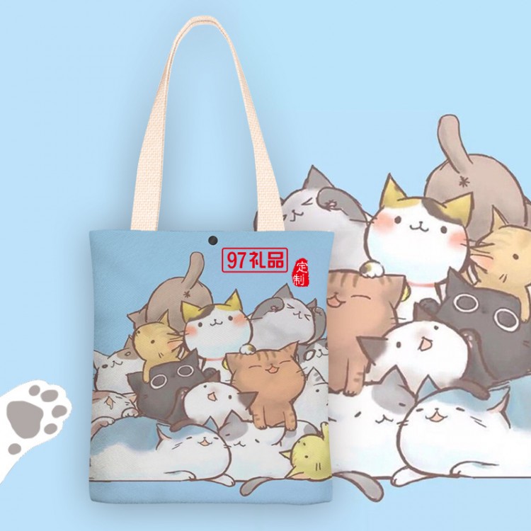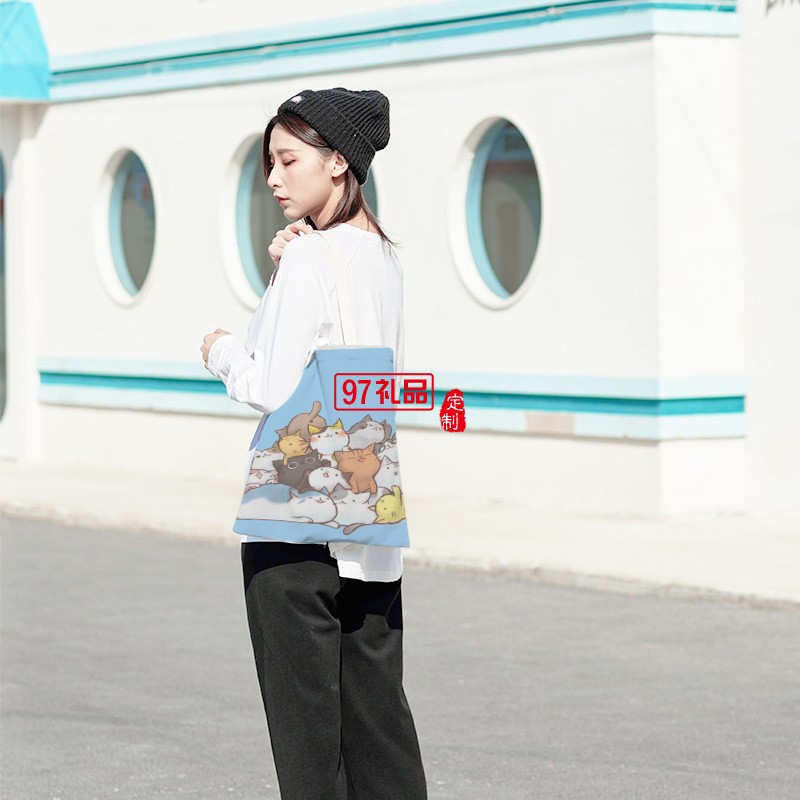 可愛貓咪少女單肩帆布包日系日系手提袋
