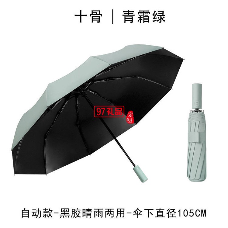 新款12骨黑膠全自動(dòng)雨傘折疊商務(wù)晴雨傘三折遮陽(yáng)防嗮太陽(yáng)傘廣告
