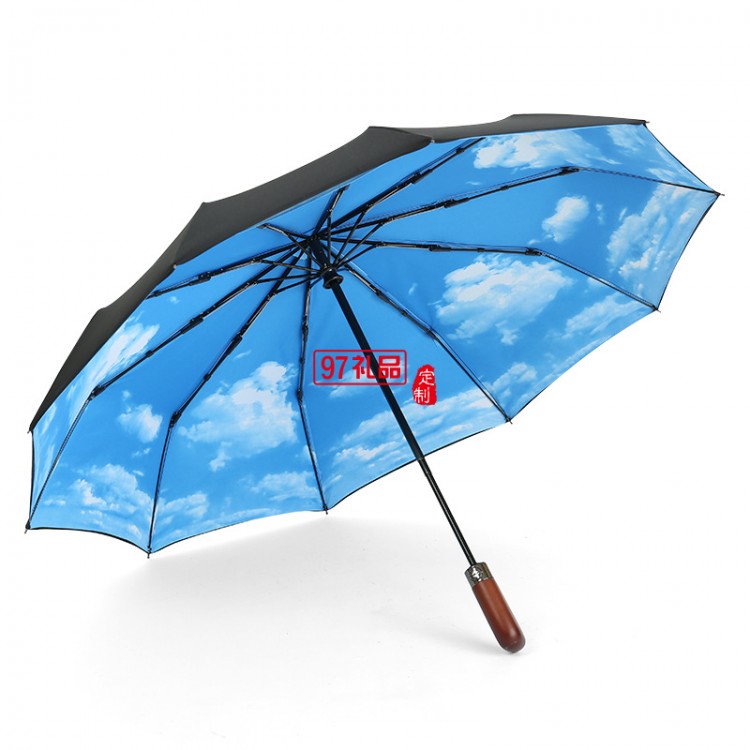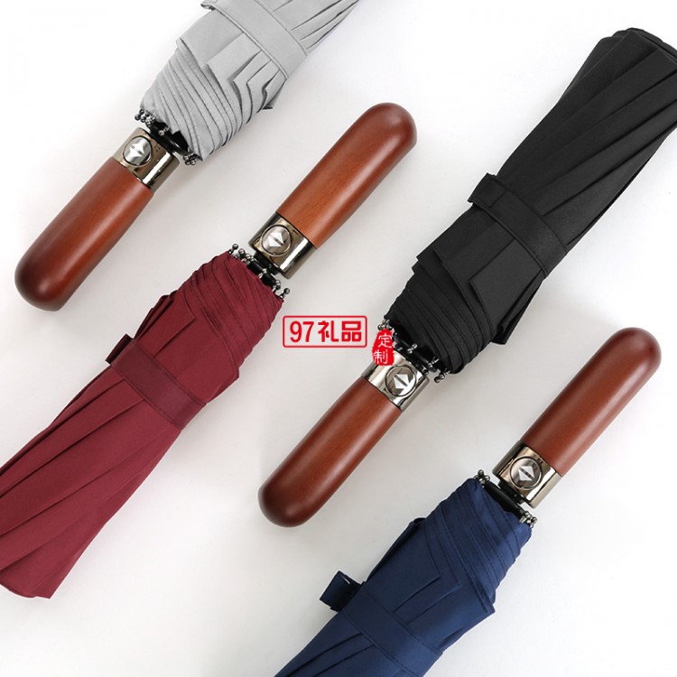 德國(guó)風(fēng)暴三折全自動(dòng)雨傘折疊傘男商務(wù)實(shí)木復(fù)古紳士雨傘定制