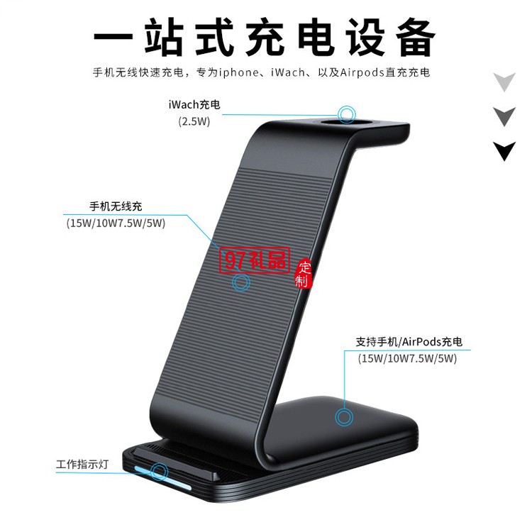 三合一無(wú)線充電器 快充10W手機(jī)耳機(jī)手表無(wú)線充
