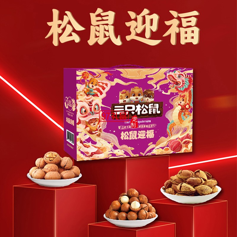 三只松鼠年貨大禮包禮遇系列禮盒混合堅果零食送員工福利-松鼠迎福