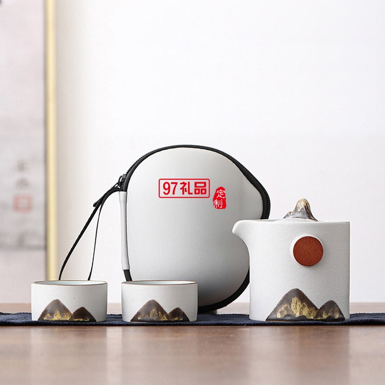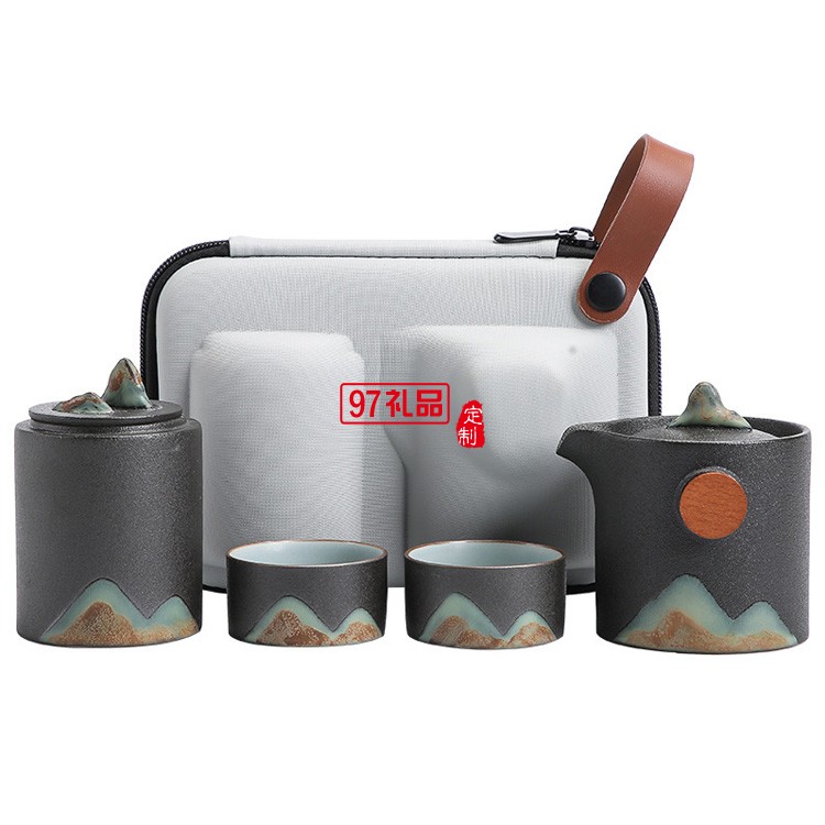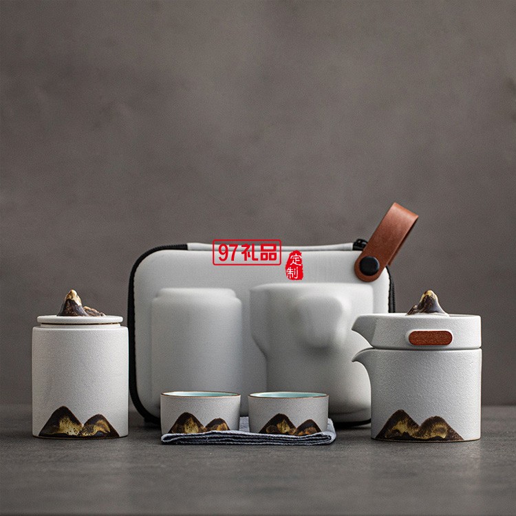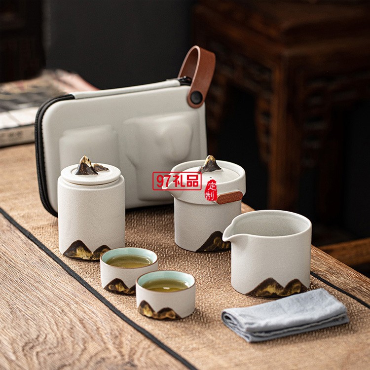 戶外旅游便攜式收納日式遠(yuǎn)山禪意粗陶家用旅行快客杯功夫茶具套裝
