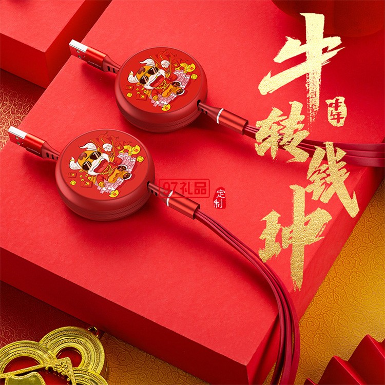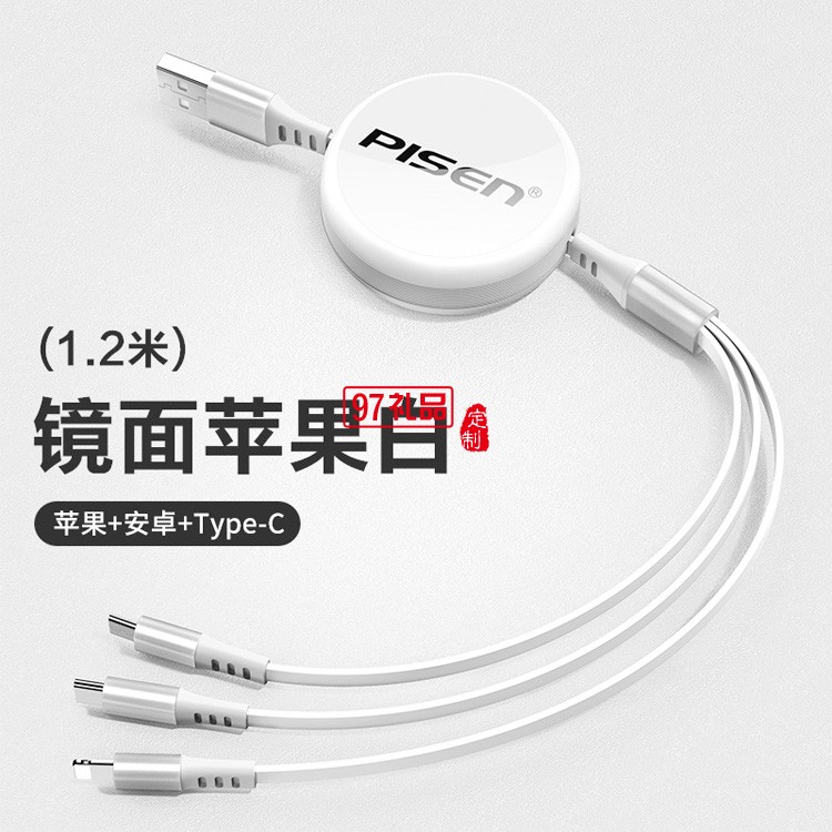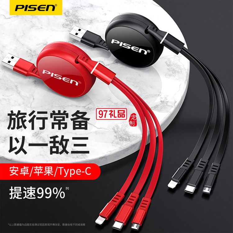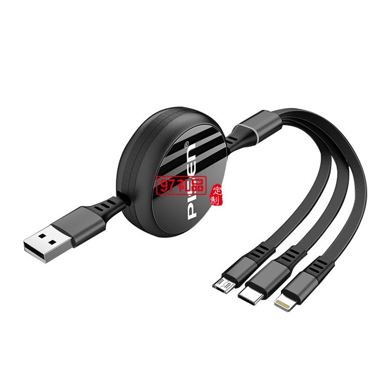 品勝一拖三數據線三合一3A快充線適用蘋果華為伸縮數據線禮品定制