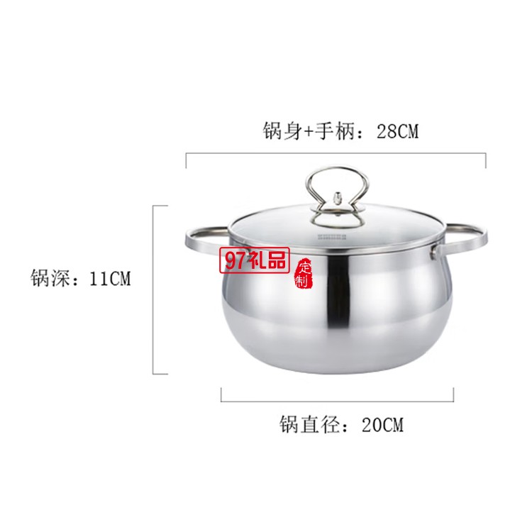 歐美達(dá)316不銹鋼湯鍋加高加厚不粘鍋具雙耳燉鍋定制公司廣告禮品
