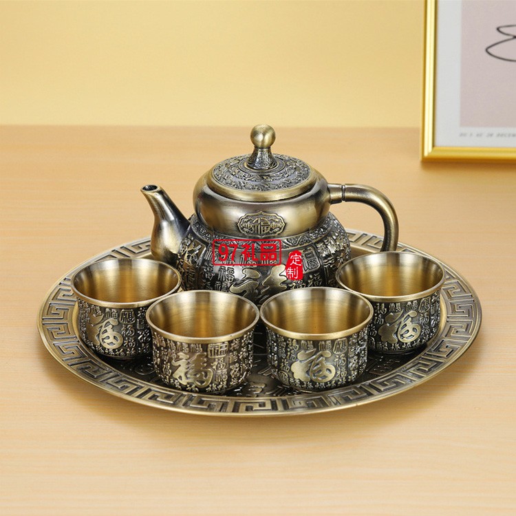茶具套裝家用復(fù)古懷舊金屬茶壺茶杯套裝功夫茶具禮盒包裝