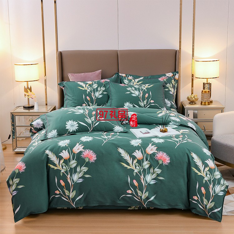 雅鹿 時尚全棉高密噴氣活性四件套床單被套枕套定制公司廣告禮品