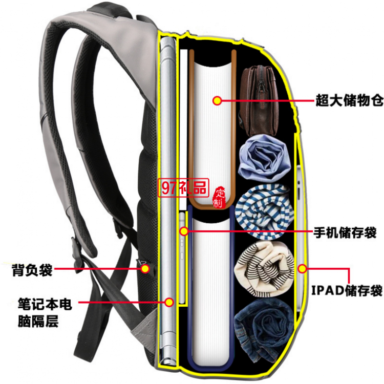 雙肩包USB充電數(shù)據(jù)線筆記本電腦包