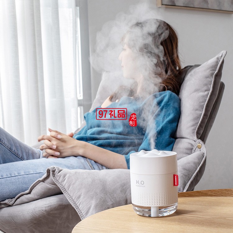 新款創(chuàng)意USB桌面夜燈雪山加濕器靜音臥室大霧量訂做高檔活動禮品定做