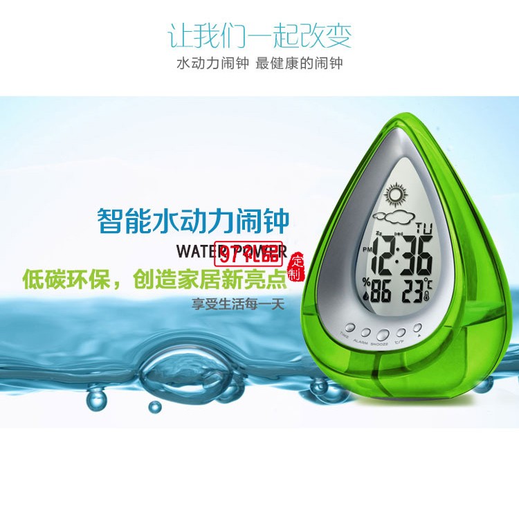 創(chuàng)意環(huán)保水動力發(fā)電水能鐘 水滴型天氣預(yù)報時鐘 desk clock