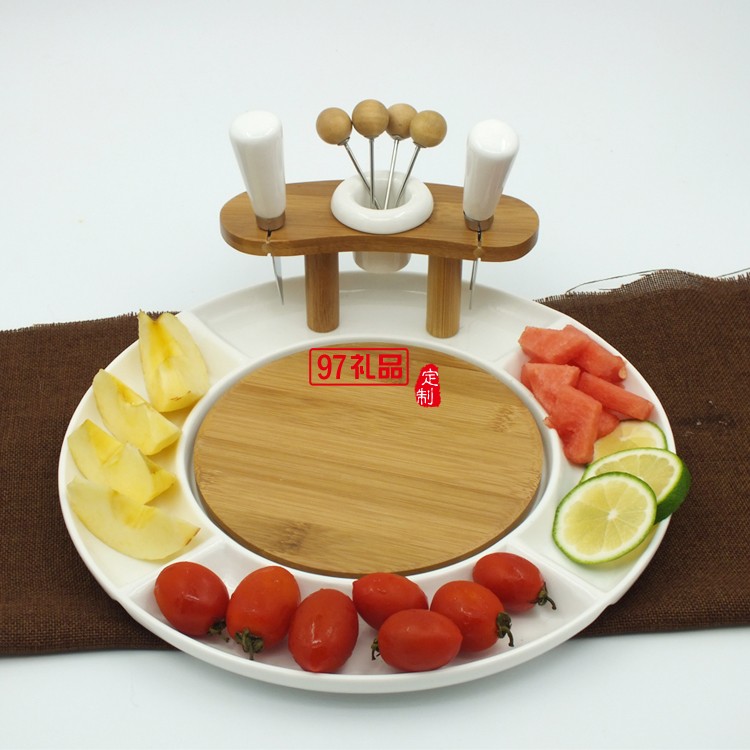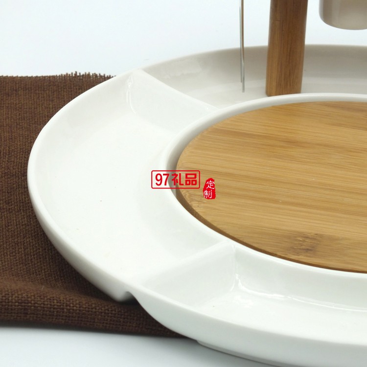 【店家推薦】:設(shè)計造型很獨特一款盤,同樣是竹木搭配陶瓷,另外還配上了刀叉跟小牙簽,盤子中間的木板用完或不用時可以拿下來的哈