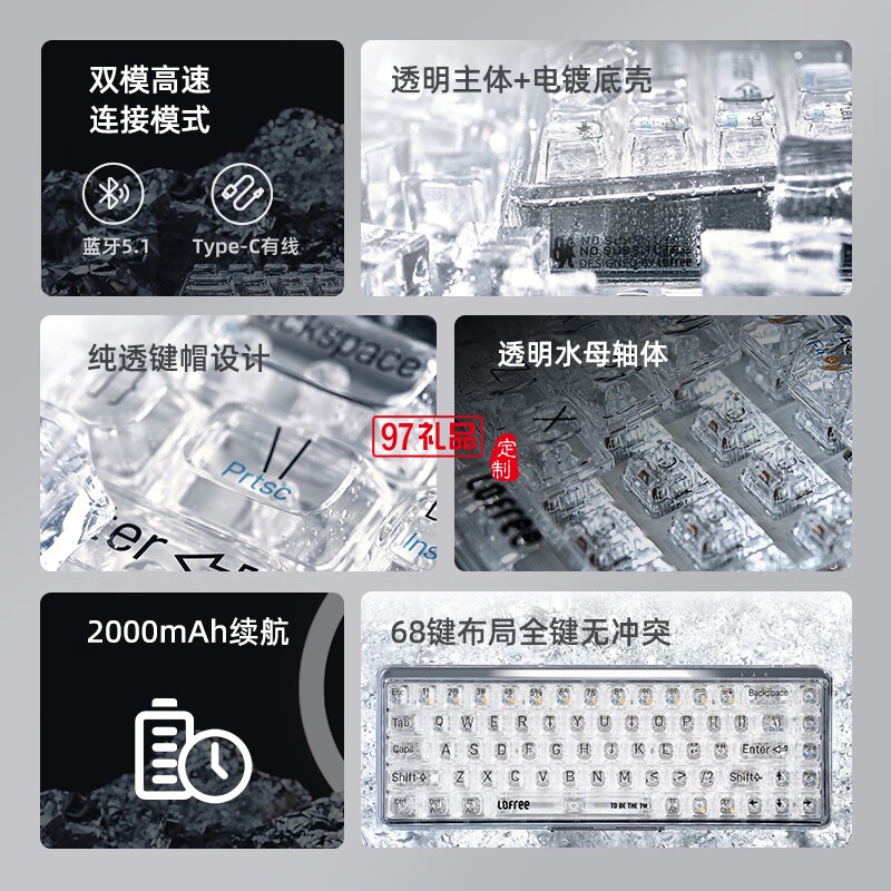 賣點介紹:有線藍牙雙模式/多系統(tǒng)兼容/鏈接多功能設(shè)備/人體工學(xué)外觀設(shè)計產(chǎn)品規(guī)格:按 鍵: 68 鍵,MX結(jié)構(gòu)水母軸(紅軸手感)背 光: LED單色背光電芯容量: 2000mAh充電時間: 約3小時接 口: Type-c模 式: 藍牙模式(5.1) / 有線模式藍牙名稱: 1%@LOFREE尺 寸: 306cx144x30.6mm重 量: 約812g